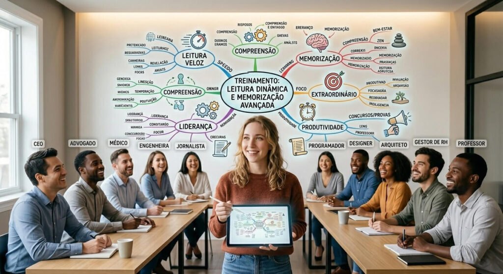 Resposta: Com certeza. A falta de memória geralmente é falta de atenção e método no momento do registro da informação. Nosso treinamento ensina “âncoras de memória” e técnicas de associação que forçam o cérebro a estar presente e focado, eliminando aquele problema de ler uma página e não lembrar de nada