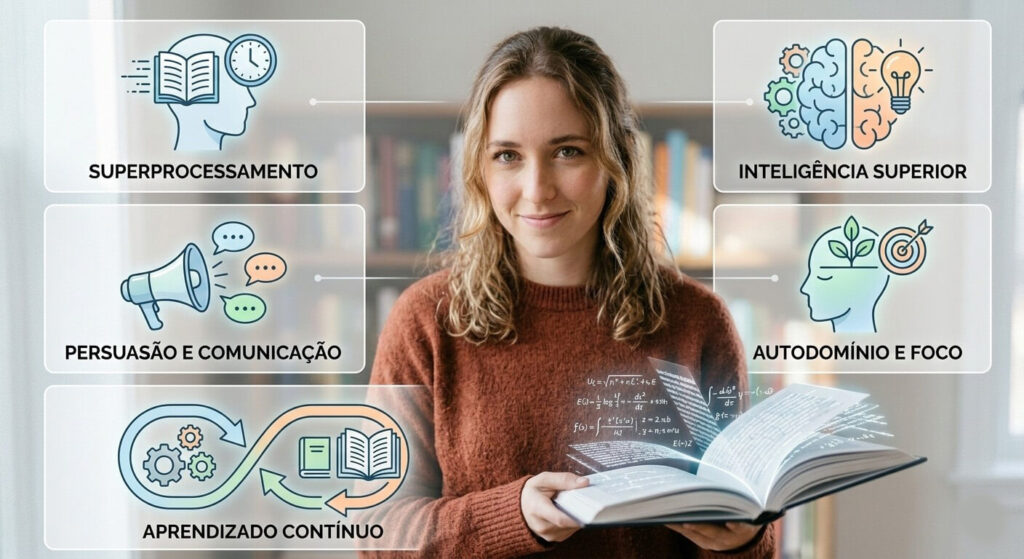 • Velocidade Extraordinária: Capacidade de ler 4 ou mais livros por semana, processando qualquer informação com muito mais rapidez.