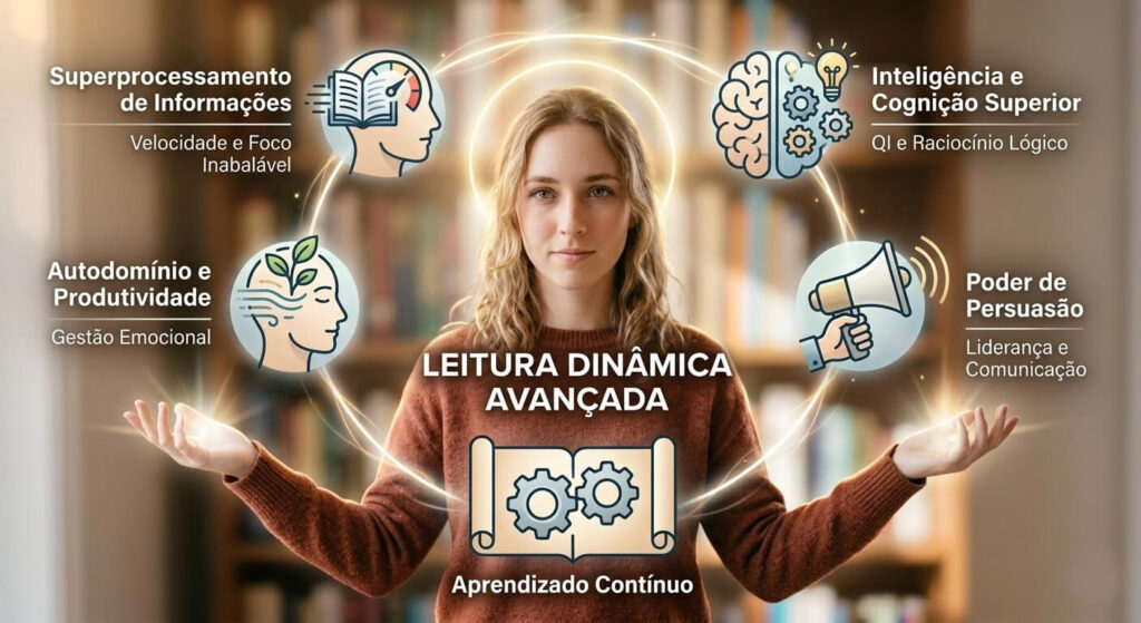 O nosso método de Leitura Dinâmica Avançada não é apenas sobre ler rápido; é sobre reprogramar a sua capacidade de aprender, processar e reter conhecimento. Ao dominar as técnicas, você desbloqueia habilidades que impactam todas as áreas da sua vida: